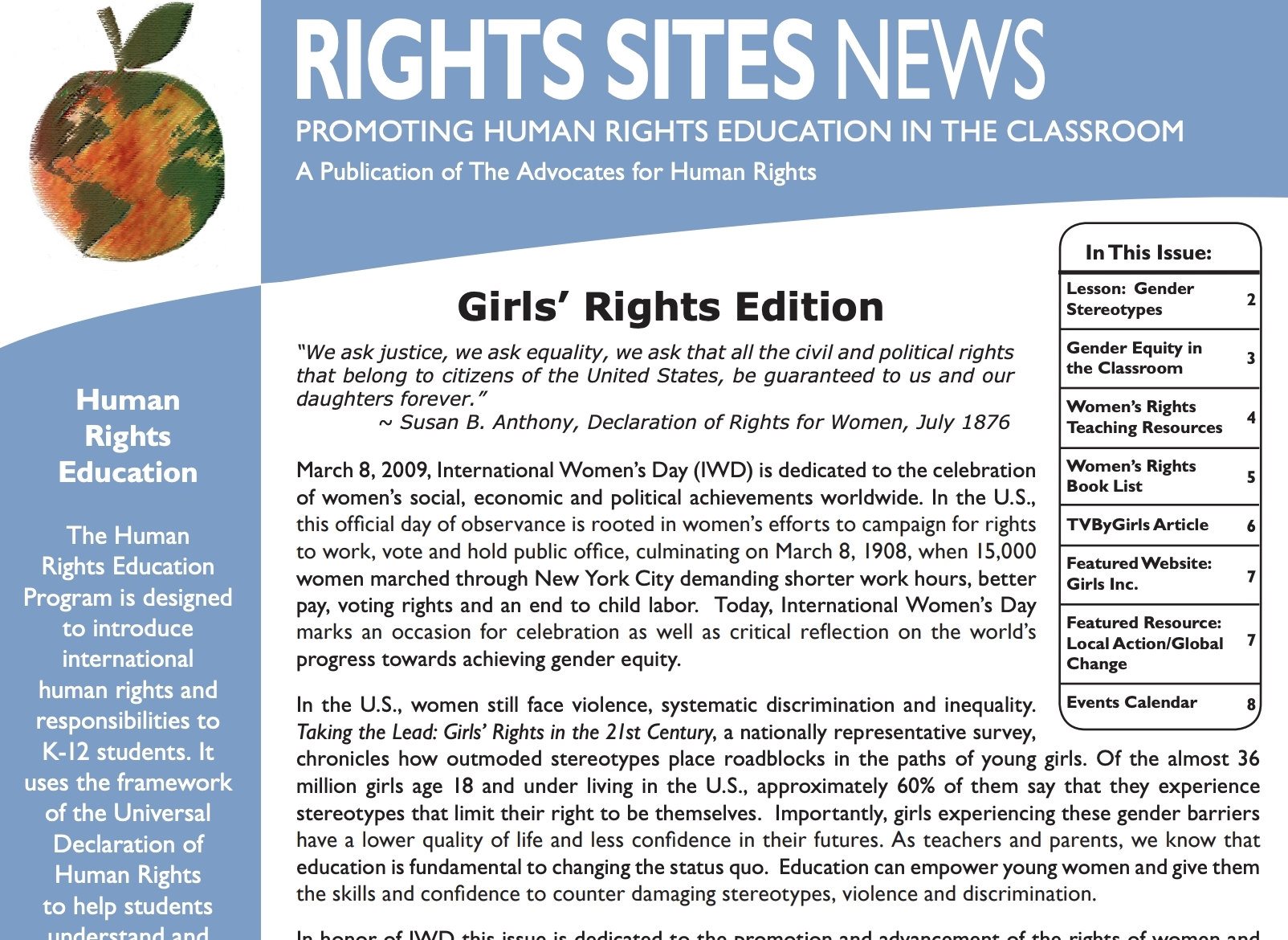 Rights Sites News: Girls' Rights Edition